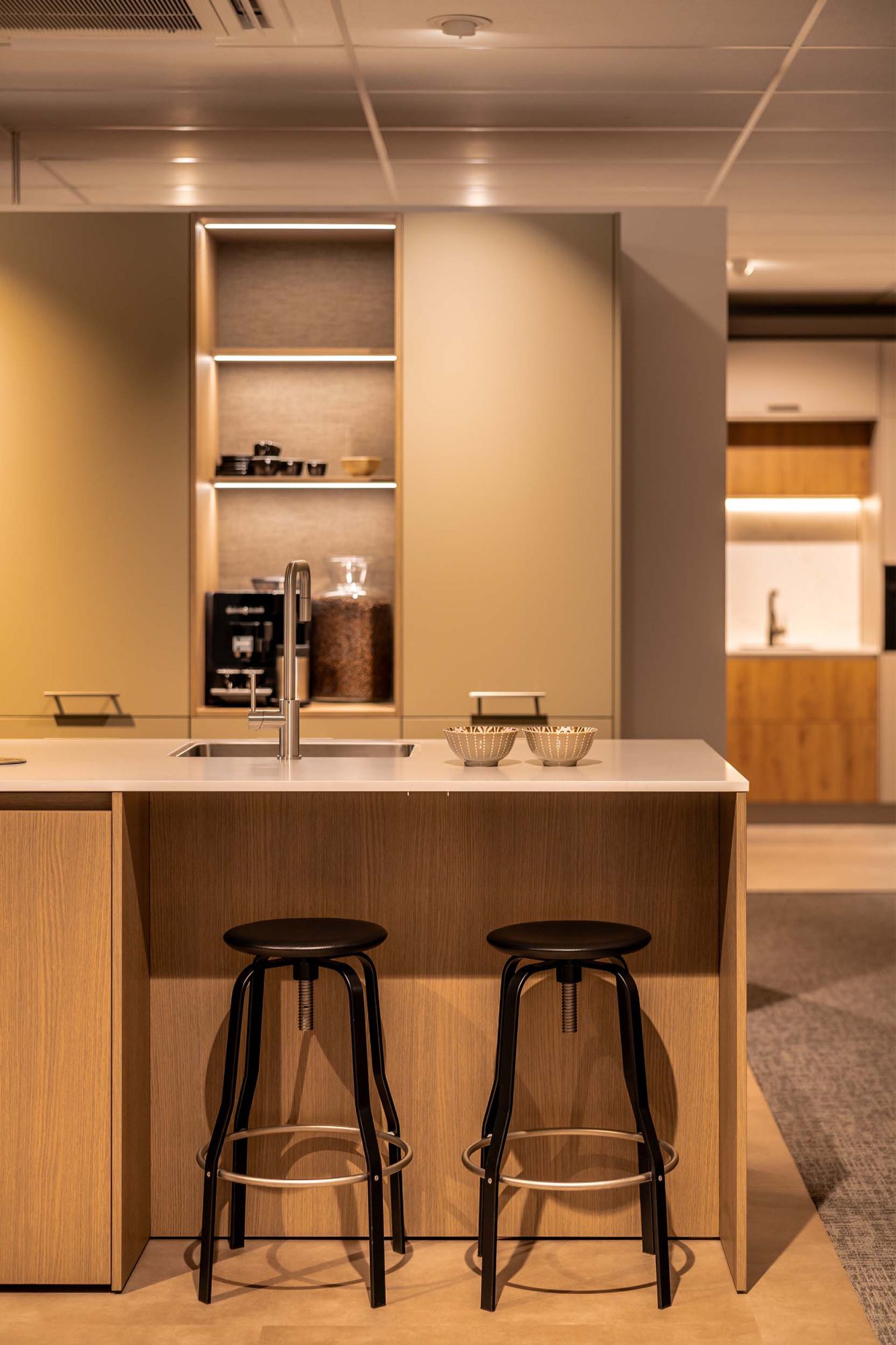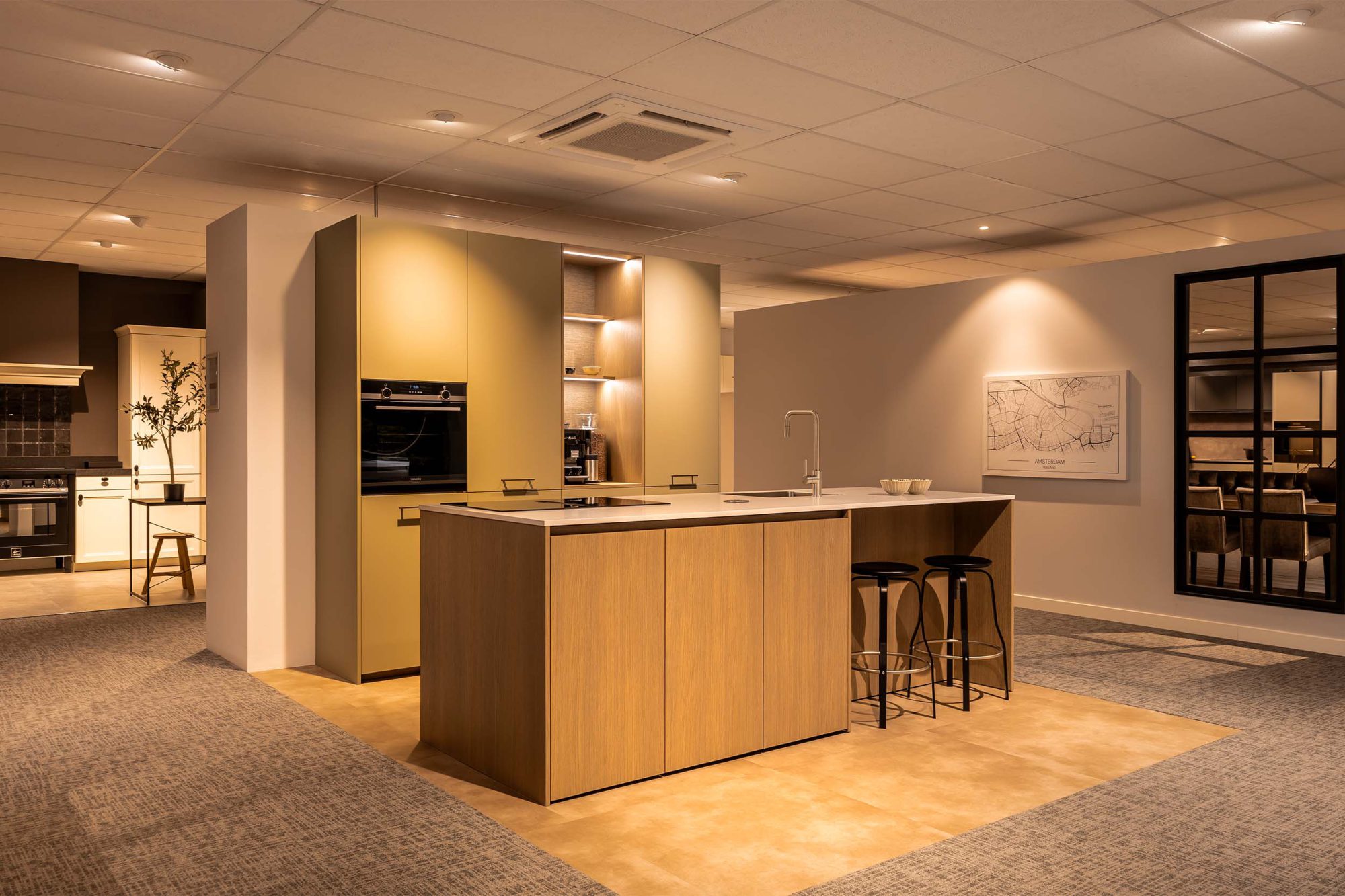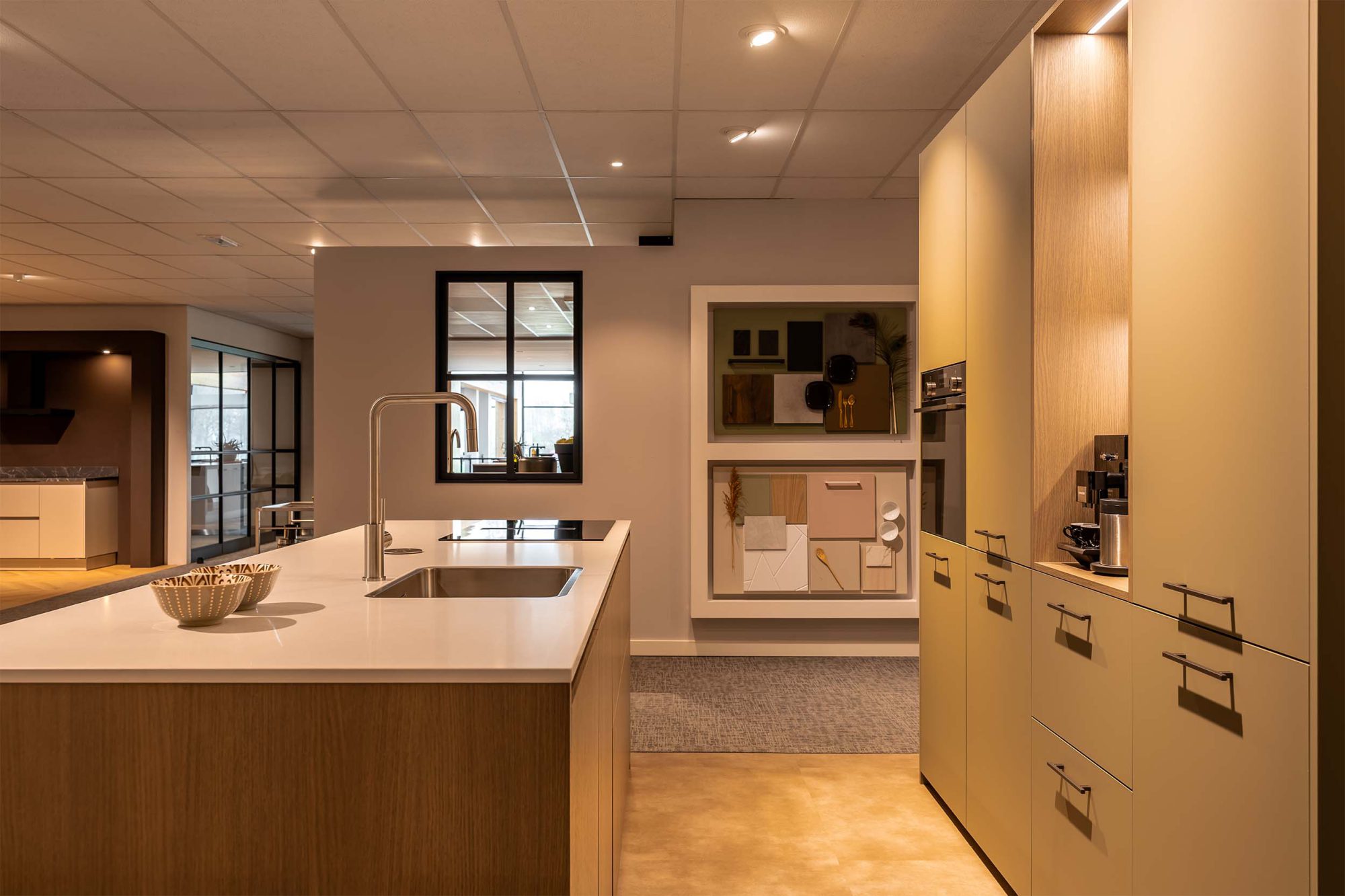 Eilandkeuken met kastenwand